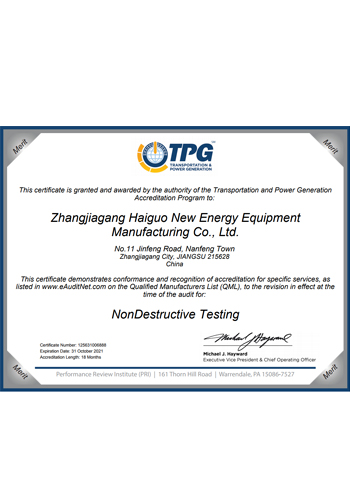 公司取得了美國ABS、法國BV、中國CCS、挪威DNVGL、韓國KR、英國LR、日本NK、意大利RINA等全球八大船級社的工廠認(rèn)證證書,建立了完善的產(chǎn)品質(zhì)量管理體系。先后獲得了美國API20B資質(zhì)證書、API6A資質(zhì)證書、APIQ1體系證書、TPG的NDT認(rèn)證證書、TPG 熱處理認(rèn)證證書、歐盟PED等認(rèn)證證書,同時也通過了一些國際客戶具有高度專業(yè)要求的資格認(rèn)證。